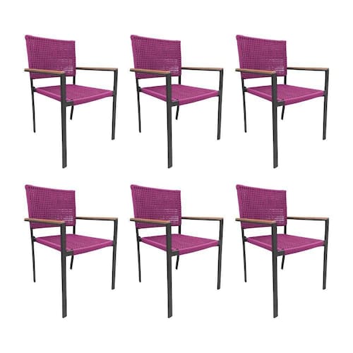 AS IMAGENS SÃO MERAMENTE ILUSTRATIVAS E PODEM SOFRER VARIAÇÕES DE COR E PEQUENOS DETALHES DE ACORDO COM O SEU MONITOR, ILUMINAÇÃO DO AMBIENTE E ATÉ MESMO A SUA PERCEPÇÃO VISUAL.Kit 6 Cadeiras Piracicaba Corda NÃutica BraÃo com Detalhe em Madeira Base AlumÃnio Preto/rosa