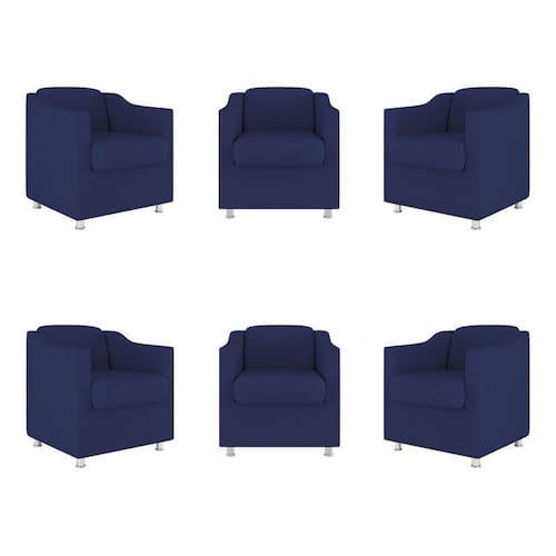 Kit 6 Cadeiras Poltronas Decorativas Espera Clinica Dentista Cor:azul Marinho