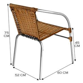 Caracteristicas: Estrutura em aluminio, leve, resistente e nao enferruja Acabamento em fibra sintetica anti-UV, ideal para ambientes externos Empilhavel, pratica para armazenar e organizar Vai montada, pronta para uso Suporta ate 120 kg