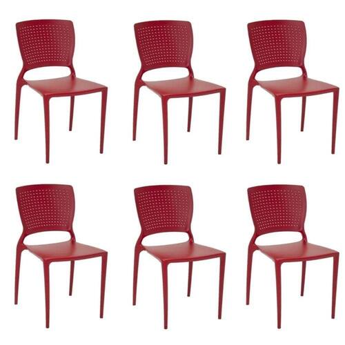 CADEIRA SAFIRA VERMELHA TRAMONTINA É BOA?A Cadeira Safira Vermelha Tramontina é excelente! Por conta de seu encosto perfurado, a Cadeira Safira Vermelha Tramontina é uma cadeira que se destaca perante os demais modelos. É uma cadeira que combina em todos ambientes, tanto em salas de jantar, cozinhas, quiosques, padarias, bares, restaurantes, dentre todos os outros segmentos do mercado. E é claro combina perfeitamente com a sua casa.
