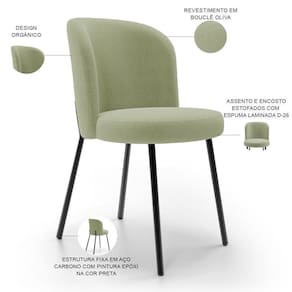 Altura da cadeira: 80 cm | Altura do assento a partir do solo: 46 cm | Color: Verde | ColorFamily: Verde | ColorSimple: Verde | ColorSupplier: Oliva | Cor: Oliva | Cor da estrutura da cadeira: Preto | Cor do assento: Oliva | Cor do estofamento: Oliva | Desenho do tecido: Bouclê | É cadeira de balanço: Não | É dobrável: Não | É empilhável: Não | Espessura do assento: na | Fabricante: Lyam Decor | Firmeza: Firme | Largura da cadeira: 44 cm | Largura do assento: 42 cm | Material: Tecido, Aço | Material do estofamento: Bouclê | MaterialFamily: Tecido, Aço | Model: Gavi | OriginCountry: Nacional | OriginState: PR | Peso máximo suportado: 120 kg | ProductContents: 06 Cadeiras | ProductHeight: 80 cm | ProductInstructions: Produto para uso em ambiente interno, nao devendo ficar exposto ao sol, calor e umidade excessivos. | ProductLength: 53 cm | ProductWarranty: 90 dias após o recebimento do produto | ProductWeight: 30 kg | ProductWidth: 44 cm | Profundidade da cadeira: 53 cm | Profundidade do assento: 42 cm | Requer montagem: Não | SizeDescription: Altura: 80 cm x Largura: 44 cm x Profundidade: 53 cm | SupplierSimpleName: Kit 6 Cadeiras Sala de Jantar Estofada Gavi L02 Bouclê Oliva - Lyam Decor | Tempo de montagem: na