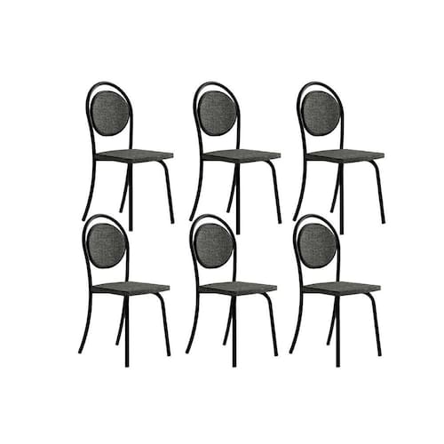 Cadeira Sala de Jantar 1738 Kit 6 Uni Preto/Grafite - Preto - Carraro