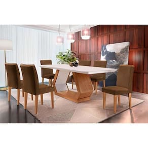 Sala de Jantar Completa Alvorada c/ Tampo Madeirado Canto Reto 180x90cm e 6 Cadeiras Amsterdã Imbuia/Off White - Suede Marrom - Rufato Abaixo segue os produtos do KIT: Sala de Jantar Completa Alvorada c/ Tampo Madeirado Canto Reto 180x90cm e 6 Cadeiras Amsterdã Imbuia/Off White - Suede Marrom - Rufato
