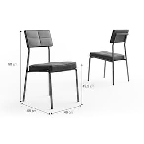 Cadeira Sala de Jantar Neo 1740 Aço Kit 2 Uni Preto/Linho Grafite/Courano Preto - Carraro