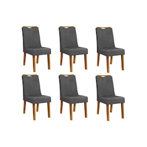Cadeira Sala de Jantar Stela Kit 2 Un Ipê/Suede Lunar Grafite - DJ Móveis