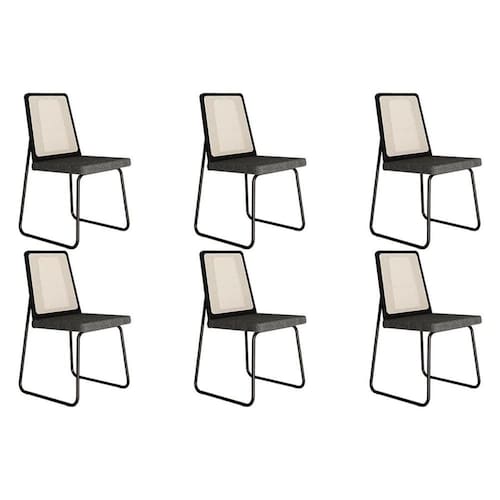Kit 6 Cadeiras Sala Jantar Wood 1751 6 Uni Preto/Linho Grafite - Carraro - Blush
