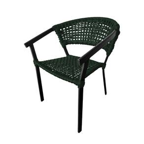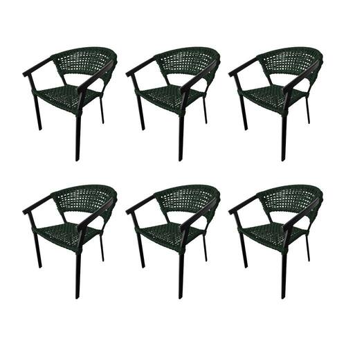 Kit 6 Cadeiras Sofia Corda Náutica Base em Alumínio Preto/verde Musgo