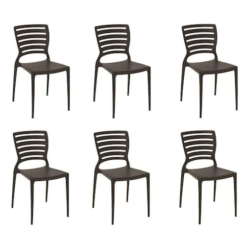 Kit 6 Cadeiras Sofia Marrom Tramontina Encosto Vazado Horizontal 92237/109
