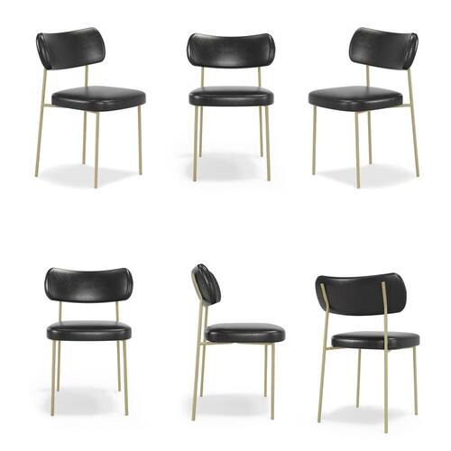 Kit 6 Cadeiras Stela Champanhe Fixa Courino Preto Recepção - Vallisa Decor
