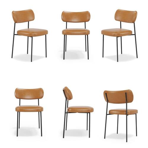Kit 6 Cadeiras Stela Escritório Couro Sintetíco Whisky - Vallisa Decor - Preto | Whisky