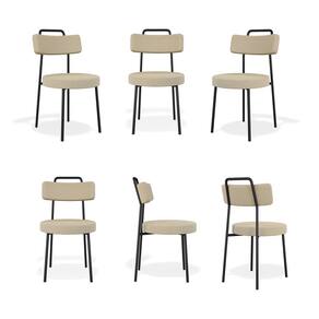Kit 6 Cadeiras Ster Estofada Sala de Jantar Linho Gengibre - Vallisa Decor - Preto | Bege