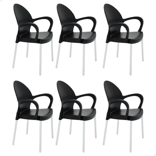 CONJUNTO COMPOSTO POR: 6 Un - CADEIRA TRAMONTINA GRACE COM BRAÇOS EM POLIPROPILENO PRETO 92068909 Marca: Tramontina Modelo: Grace Preto 92068/909