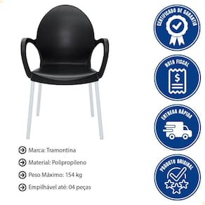 3. A cadeira é empilhável? Sim! A Tramontina Grace é empilhável em até 4 unidades, facilitando o armazenamento e otimizando espaço.