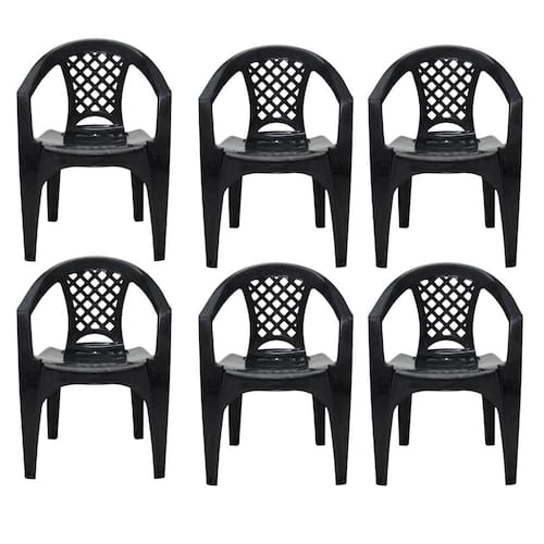 Kit 6 Cadeiras Tramontina Iguape Polipropileno com Bracos Empilhaveis - Preto
