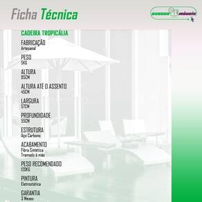 Produzida em aco com pintura eletrostatica e fibra sintetica trancada a mao, e ideal para areas gourmet, varandas cobertas, ediculas e espacos de lazer, oferecendo leveza, praticidade e visual elegante para o seu ambiente.