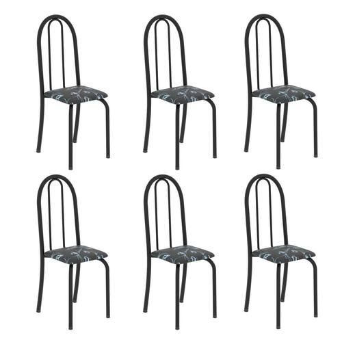 Kit 6 Cadeiras Tubular 96x36x41 Cm Iris B Floral preto / Preto TXT