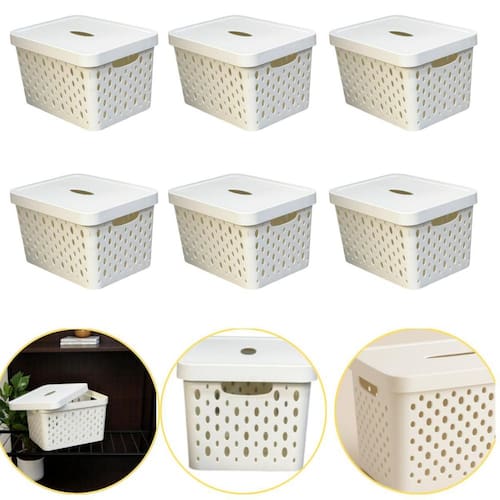 Kit 6 Caixa Cesto Organizador Multiuso Empilhável 17L Branco Kit 6 Caixa Cesto Organizador Multiuso Empilhável 17L Branco DESIGN FUNCIONAL Contorno rebaixado para encaixar o fundo da caixa: Você não precisa deixar a tampa separada ou distante do Cesto, pois o rebaixamento permite que tudo se encaixe perfeitamente, garantindo um acabamento mais ajustado e prático