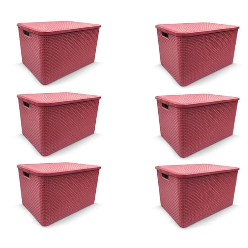 Kit 6 Caixa Organizadora Rattan Decorativa com Tampa ORGANIZADOR RATTAN com TAMPA 07 LITROS - ROSA