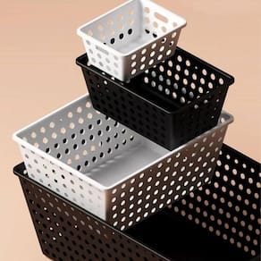 Para ajudar a manter a organização da sua casa, a linha da Coza conta com as versáteis e práticas cestas com 18 x 14 x 8cm, que trarão mais facilidade na organização da sua casa no dia a dia. As cestas plásticas pequenas podem ser usadas em qualquer ambiente da casa, seja para armazenar frutas na cozinha, organizar itens no quarto e até guardar maquiagens no banheiro. As cestas combinam com todas as decorações, pois possuem um design minimalista. São itens funcionais que trazem sentido na frase: "cada coisa em seu lugar".