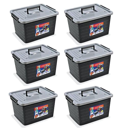Kit 6 Caixas Organizadoras 35 Litros PRETA 25166 Arqplast Kit 6 Caixas Organizadoras 35L Com Rodinha Esta prática e funcional caixa organizadora mantém organizados, protegidos e bem armazenados todos os Itens que sejam necessários. Ajuda a organizar o ambiente e economiza espaço. Com travas laterais, alça para transporte e rodinhas embaixo, fica muito fácil locomover a caixa para diversos ambientes. Capacidade: 30 Litros Medidas em cm: CxLxA : 50x38x31