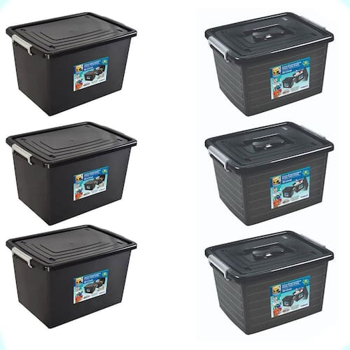 Kit 6 Caixas Organizadoras 56 E 30 Litros Com Tampa E Trava