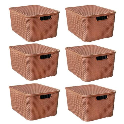 Kit 6 Caixas Organizadoras Rattan Marrom 40 Litros com Tampa 25602 Arqplast Kit 6 Caixas ORGANIZADORas RATTAN com TAMPA 40 MARROM 25602 ARQPLAST