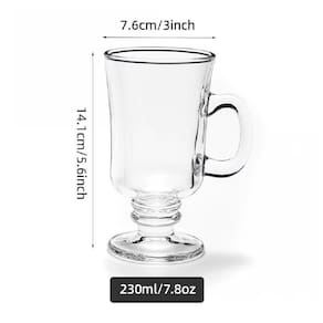 Linha: Coffee. Cor: Transparente. Quantidade de Peças: 6 canecas. Capacidade: 230 ml cada. Dimensões do Produto: Diâmetro de 7,6 cm. Altura: 14,1cm
