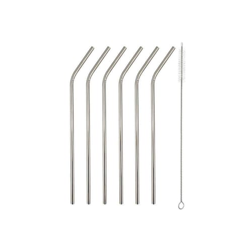 O kit acompanha 6 canudos curvos de inox e uma escova para higienização, facilitando a limpeza e garantindo a durabilidade do produto. A escova é especialmente projetada para alcançar todos os cantos do canudo, garantindo uma limpeza completa.