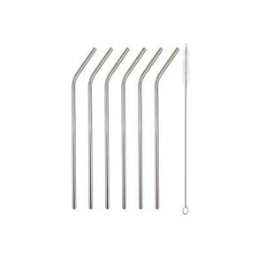 Kit 6 Canudo Curvo Inox Reutilizável Ecológico Fácil de Transportar Ideal para Bebidas em Geral e Escova