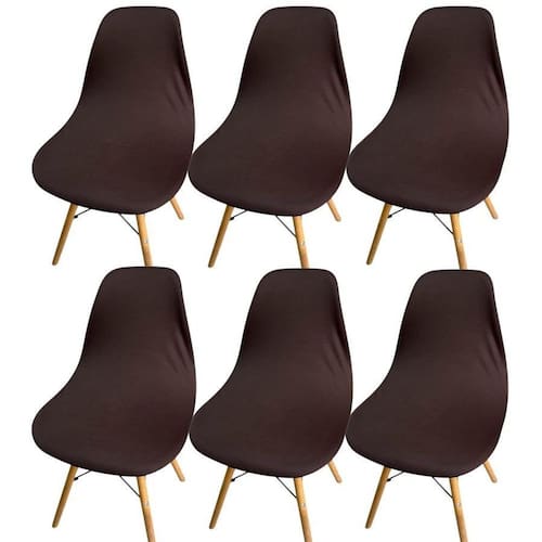 Kit 6 Capa de Cadeira Charles Eames Eiffel Pé Palito Malha Lisa Cor: Marrom As capas de cadeira chegaram pra ficar, pois além de proteger, mantendo-as limpas e novas por mais tempo, te permitem mudar a decoração sempre que quiser, graças à grande variedade de cores e estampas disponíveis. A malha gel é resistente, leve e maleável, fácil de lavar, seca rápido e é muito fácil de vestir.