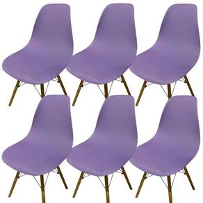 Kit 6 Capa de Cadeira Charles Eames Eiffel Pé Palito Malha Lisa Cor: Lilás As capas de cadeira chegaram pra ficar, pois além de proteger, mantendo-as limpas e novas por mais tempo, te permitem mudar a decoração sempre que quiser, graças à grande variedade de cores e estampas disponíveis. A malha gel é resistente, leve e maleável, fácil de lavar, seca rápido e é muito fácil de vestir.