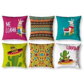 Kit 6 Capas De Almofada 40Cm X 40Cm Estampadas Lhama