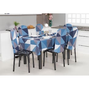 Kit 6 Capas Encosto de Cadeira de Ferro Tubular Cozinha e Jantar Malha Helanca Estampada Cor: 26 geométrico azul As capas de cadeira chegaram pra ficar, pois além de proteger suas cadeiras, mantendo limpas e novas por mais tempo, te permitem mudar a decoração sempre que quiser, graças a grande variedade de cores e estampas disponíveis. A malha gel é resistente, leve e maleável, fácil de lavar, seca rápido e é muito fácil de vestir.