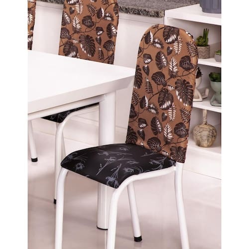 Kit 6 Capas Encosto de Cadeira de Ferro Tubular Cozinha e Jantar Malha Helanca Estampada Cor: 5 folhas marrom As capas de cadeira chegaram pra ficar, pois além de proteger suas cadeiras, mantendo limpas e novas por mais tempo, te permitem mudar a decoração sempre que quiser, graças a grande variedade de cores e estampas disponíveis. A malha gel é resistente, leve e maleável, fácil de lavar, seca rápido e é muito fácil de vestir.