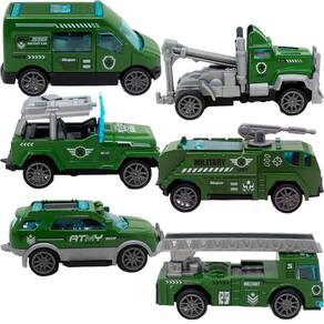 Kit 6 Carrinhos De Brinquedo Exército Miniatura Colecionável -
