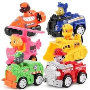 Especificações: Tamanho: aproximadamente 7cm Peso: aproximadamente de cada carrinho 30g Material: plástico pvc Marca: Patrulha Canina Modelo: todos de fricção