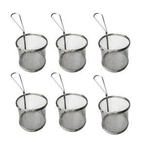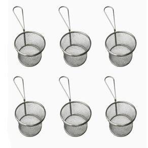 Kit 6 Cestos Redondo Aço Inox Para Servir Frituras 8,5X7,5Cm
