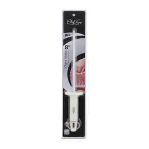 A chaira de 8 polegadas é produzida em aço carbono de alta qualidade, com cabo ergonômico em polipropileno que proporciona firmeza e conforto no manuseio. Possui furo passante que permite pendurar o utensílio com praticidade, além de contar com acabamento em resina termoplástica injetada, que aumenta a durabilidade e facilita a higienização.