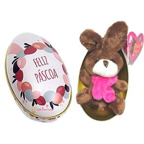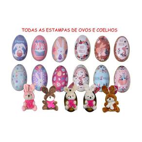 KIT 6 Coelhos da Pascoa 6 Ovos de Metal Colecionavel Pelucia