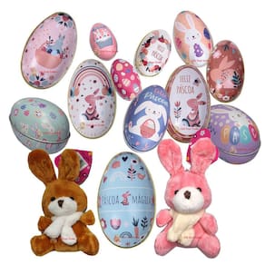 Acompanha: 6 Ovos de Metal + 6 Coelhinhos de Pelúcia