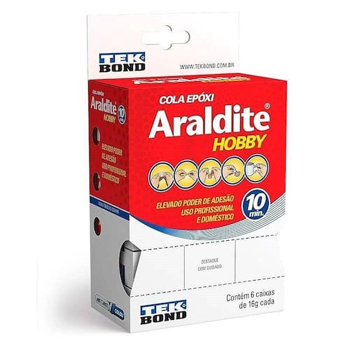 O Kit 6 Cola Araldite Epóxi Multiuso Ultra Rápido Transparente Hobby 16g da Tekbond é uma opção versátil e eficaz para suas necessidades de colagem. Este kit inclui seis tubos de cola epóxi transparente, cada um com 16g de produto. A cola Araldite é conhecida por sua alta qualidade e resistência, e esta versão ultra rápida permite que você una diferentes materiais de forma rápida e segura. É uma escolha ideal para projetos de artesanato, hobby e reparos, oferecendo uma aderência confiável em uma variedade de superfícies. Com a transparência, a cola Araldite se mistura de forma discreta, tornando-a perfeita para aplicações onde a estética é importante. Este kit é a solução conveniente para suas necessidades de colagem em projetos diversos.