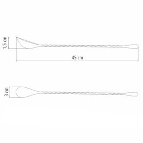 As colheres bailarina possuem um cabo longo em espiral de 45cm, proporcionando uma empunhadura confortável e facilitando o manuseio durante a preparação de bebidas. Fabricadas em aço inox são peças resistentes, versáteis e elegantes, ideais para mexer e misturar ingredientes de uma variedade de bebidas, como sucos, refrescos, drinks e coquetéis.