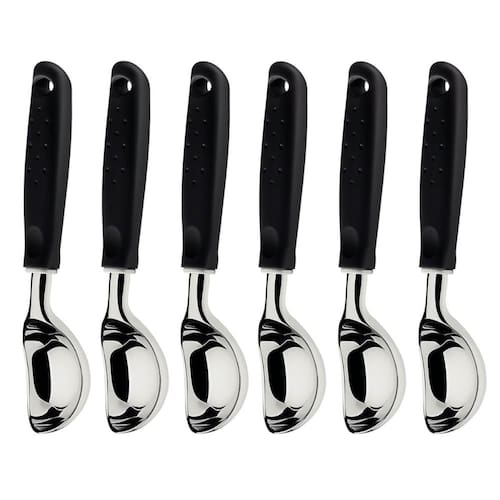 Kit 6 Conchas de Sorvete Sobremesa Tramontina Utilitá Pegador Sorveteria Restaurante Zamak Cromado Cabo Polipropileno Preto