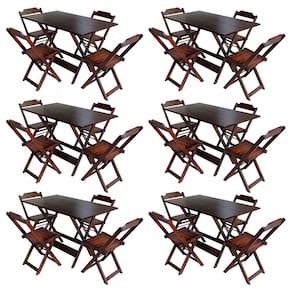 Kit 6 Conjuntos De Mesa Com 4 Cadeiras De Madeira Dobravel 120x70 Imbuia