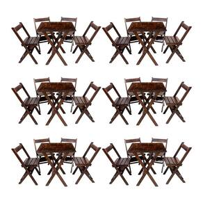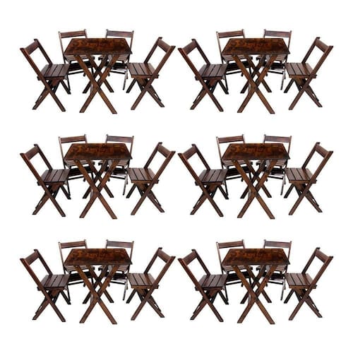 AS IMAGENS SÃO MERAMENTE ILUSTRATIVAS E PODEM SOFRER VARIAÇÕES DE COR E PEQUENOS DETALHES DE ACORDO COM O SEU MONITOR, ILUMINAÇÃO DO AMBIENTE E ATÉ MESMO A SUA PERCEPÇÃO VISUAL.Kit 6 Conjuntos De Mesa DobrÃvel 60x60cm Com 4 Cadeiras Em Madeira MaciÃa - Imbuia
