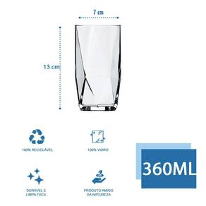 Conjunto Copos De Vidro Transparente Long Drink Topazio 360ML 6 Unidade