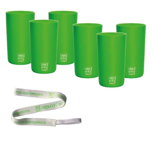 Kit 6 Copos Eco Verde Com Cordão Green Cups 280 Ml O Copo Long Drink 280ml Green Cups® verde é derivado de cana de açúcar, uma fonte renovável e ideal para água, suco e refrigerantes em geral, é totalmente inodoro, resistente e durável. Ideal para substituir vidros e descartáveis em produtos e empresas. Vem com cordão personalizado para você utilizar junto ao copo Especificações: Material: Cana de Açúcar, Altura: 11,7 cm, Diâmetro: 6,5cm Capacidade: 280 ml, Cor: Verde, Tamanho: Único, Quantidade: 6 copos e 6 cordões