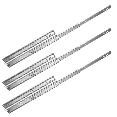 Kit com 6 Corrediças 3 pares Telescópica Trilho 400mm x 35mm 35Kg para Gaveta Rayco A Corrediça telescópica 40cm x 35mm da Rayco é indicada para gavetas de cozinhas, closets, quartos, banheiros, lavanderias, prateleiras retráteis/extensíveis, bases de teclado e mobiliário em geral. O par suporta até 35kg. - Marca: Rayco - Referência: R20533-3X - Acompanha 6 corrediças 3 Pares - Comprimento: 40cm 16 Polegadas - Largura: 35mm - Espessura: 12,1mm - Para uso geral e pesado - Possibilita a abertura total da gaveta com deslizamento suave, preciso e resistente - Corpo em aço galvanizado - Deslizamento através de de aço - Tipo: telescópica - O par suporta até 35kg - Peso: 515 gramas - : 90 dias