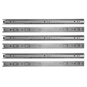 Kit com 6 Corrediças Telescópicas Trilho Zincada 450mm 18Pol. Par para Gaveta Rayco - 3 Pares A Corrediça telescópica 45cmm da Rayco é indicada para gavetas de cozinhas, closets, quartos, banheiros, lavanderias, prateleiras retráteis/extensíveis, bases de teclado e mobiliário em geral. - Marca: Rayco - Referência: R14656-3X - Kit com 6 Corrediças 45cm 3 pares - Comprimento: 450mm 18 Polegadas - Largura: 30mm - Espessura: 10mm - Acompanha 1 par de corrediças - Para uso geral - Possibilita a abertura total da gaveta com deslizamento suave, preciso e resistente - Corpo em aço galvanizado - Deslizamento através de de aço - Tipo: telescópica - O par suporta até 20kg - Peso bruto: 510 gramas o par - : 90 dias Marca: Não Informado