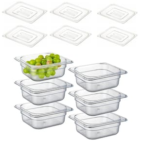 CONTEM 6 CUBAS E 6 TAMPAS DE 1/4 GN Marca: Triboshop Ean: 79086302413878